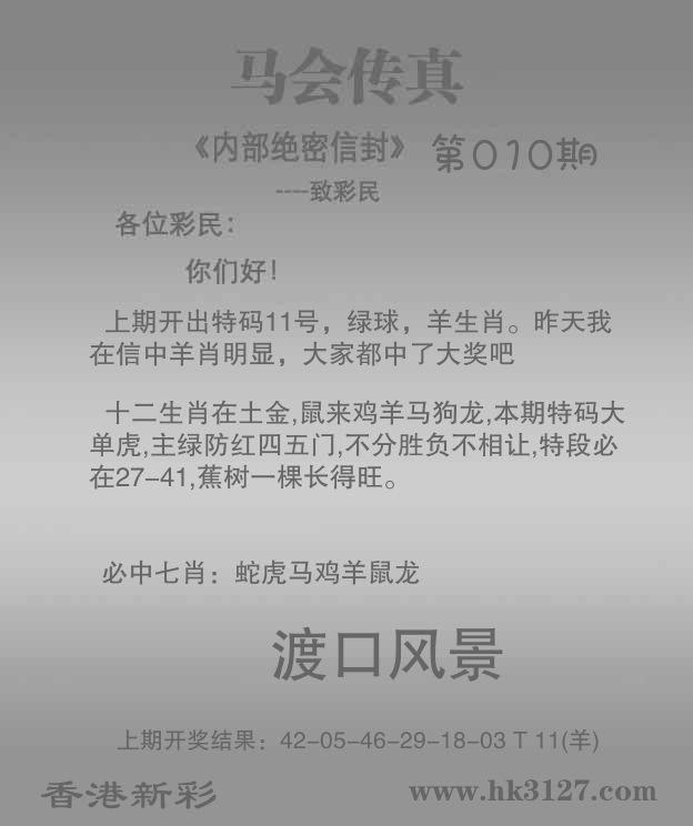 | 010期 | 虎 | 6尾 | 蓝双 | 27-36 | 49蛇 |