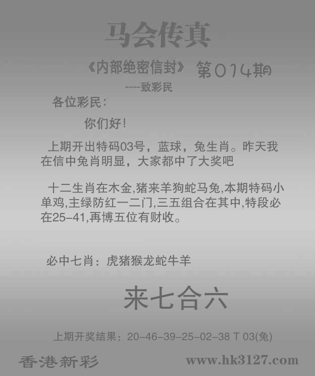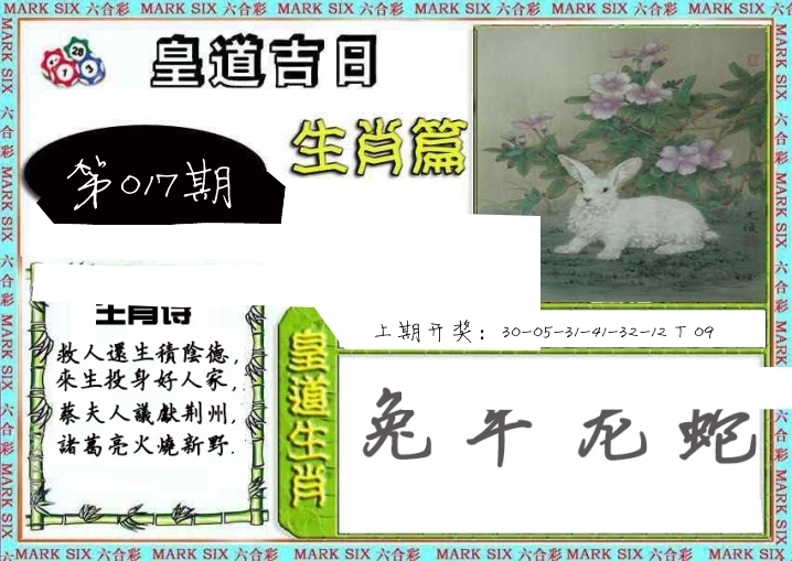| 014期: ⑥肖 | 鸡羊马兔虎鼠 | 兔15中 |