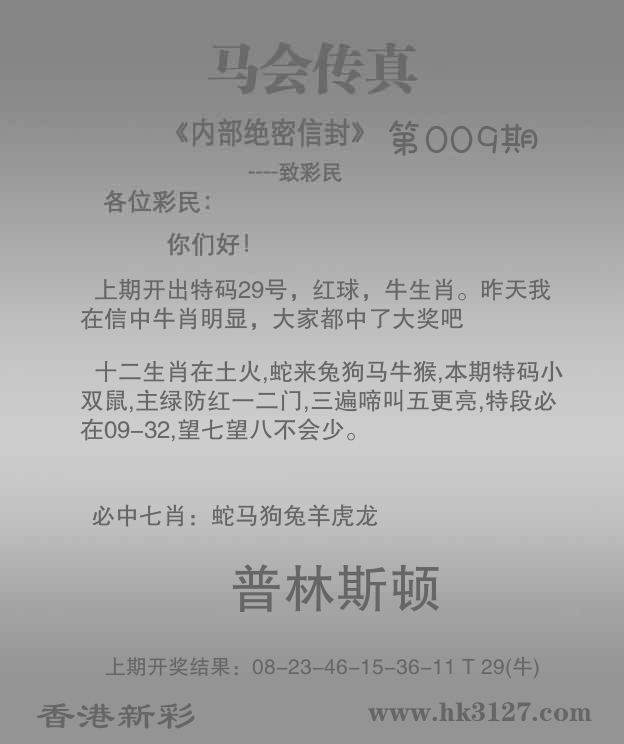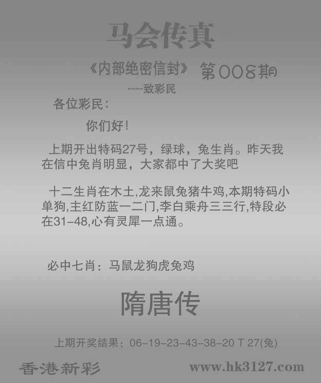 | 008期: ⑥肖 | 兔猪虎龙马狗 | 牛29中 |